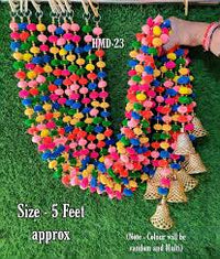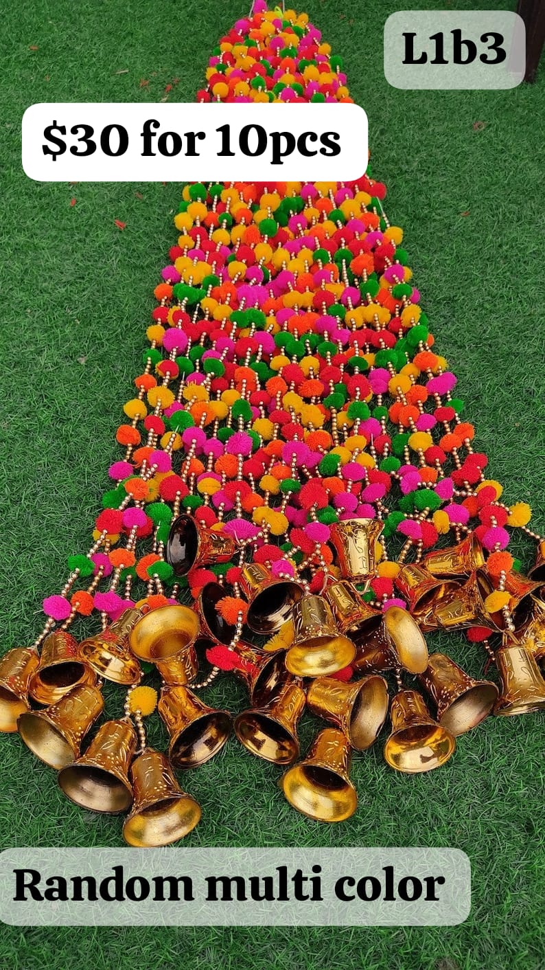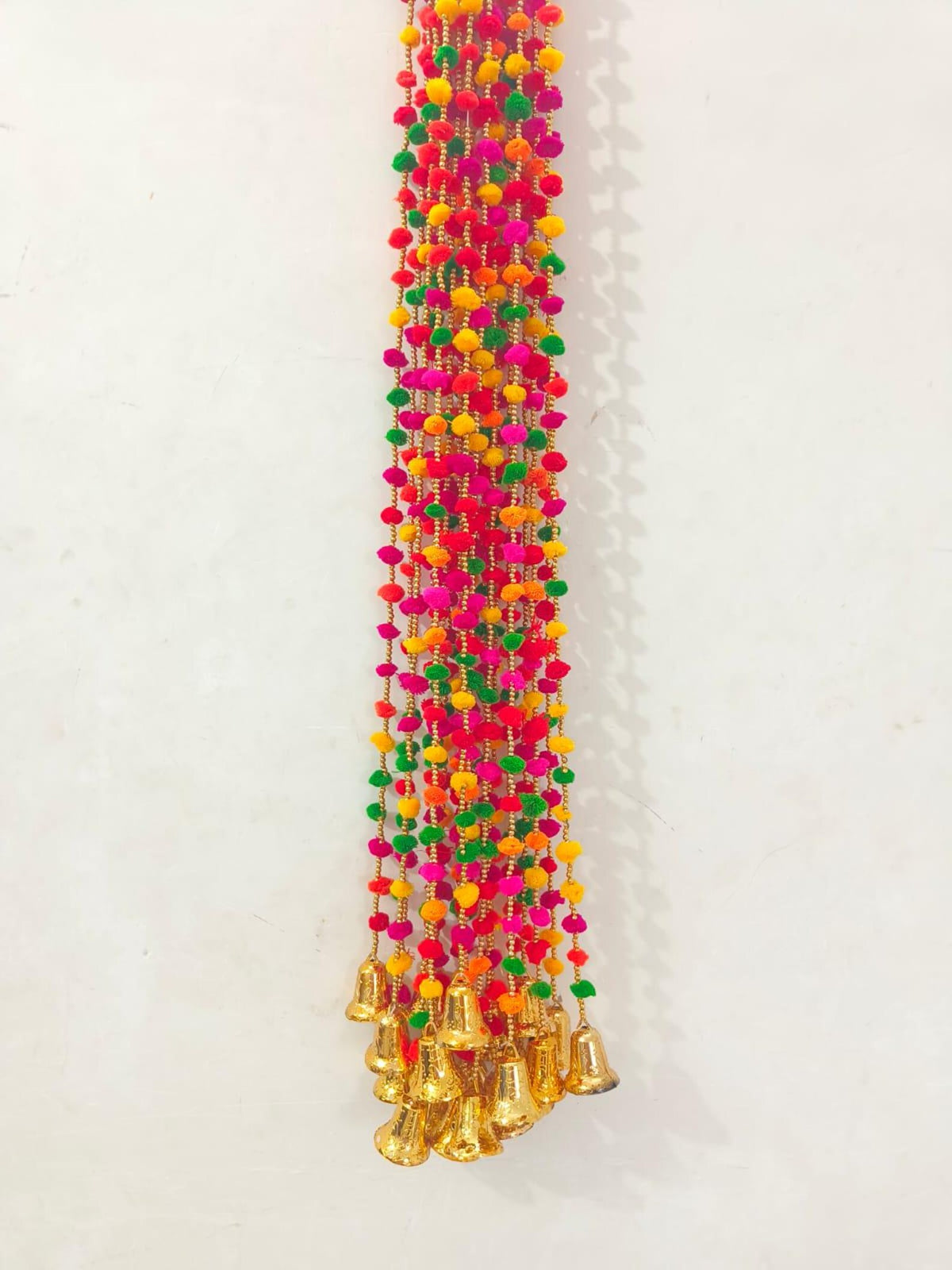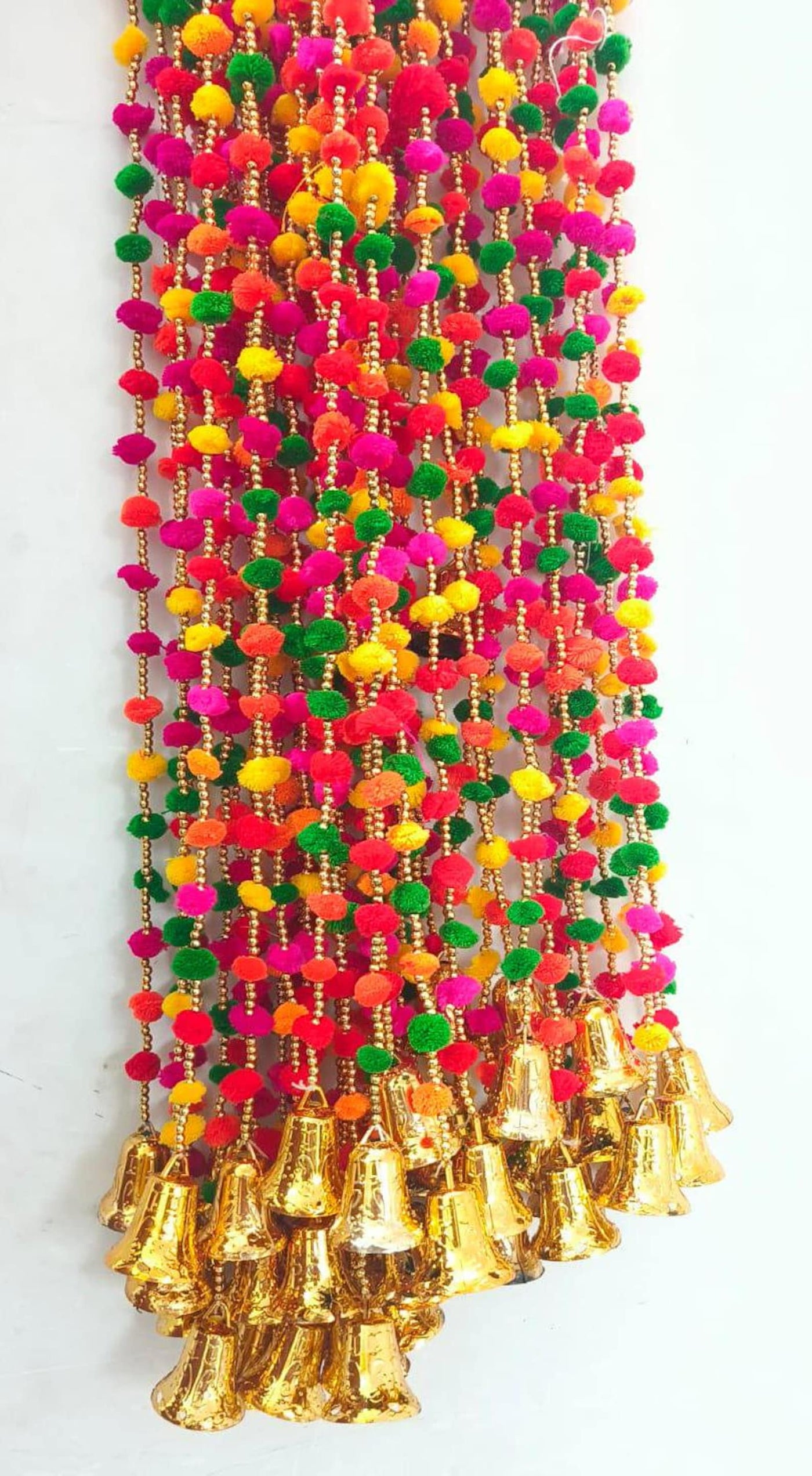 Add vibrant color and traditional charm to your celebrations with this handcrafted Indian Pom Pom Garland Set. Perfect for Ganesh Chaturthi, Diwali, weddings, and festive decor, these multicolor strings with bells bring an authentic touch to your home or event.