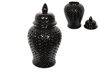 Add a touch of exotic elegance to your space with this 42cm Black Moroccan Round Temple Jar. Crafted with a sleek, rounded silhouette and finished in a deep, glossy black glaze, this piece draws inspiration from traditional Moroccan design while offering a bold, modern edge.