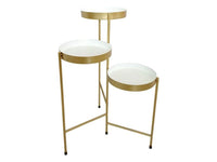Showcase your greenery in style with this 68cm Triple White & Gold Metal Plant Stand. Featuring three staggered tiers, sleek white planters, and a luxe gold metal frame, it blends function with contemporary flair. Perfect for adding vertical interest and a touch of glam to any indoor space.