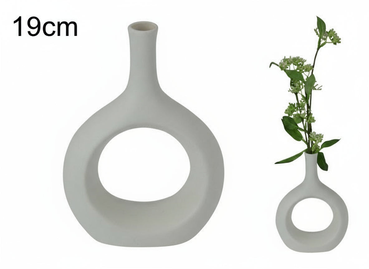 Enhance your interior with this elegant set of 23cm and 19cm white ceramic vases, designed to bring a clean, modern touch to any room. With their smooth matte finish and minimalist silhouette, these vases complement a wide range of décor styles including Nordic, contemporary, and minimalist spaces.