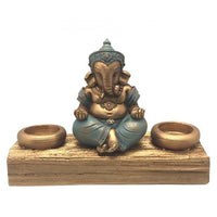 Design: Ganesh in a meditative pose with two candle holders