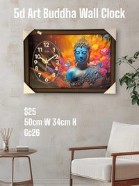 Create a calming and spiritual ambiance with this Buddha 5D Crystal Art Wall Clock, beautifully sized at 50cm wide by 34cm high. Featuring 5D depth visuals, crystal embellishments, and a protective glass front, all enclosed in a high-quality wooden frame, this timepiece blends serenity with style.