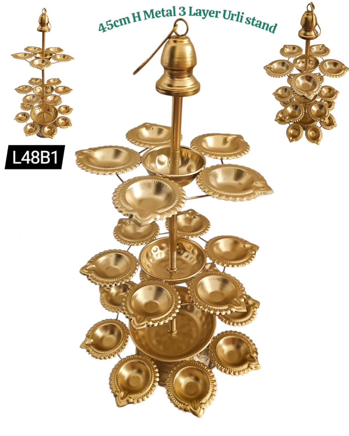 Enhance your celebrations with this Urli Bowl with Diya Stand, crafted from durable iron with a gold finish. Perfect for placing tealights, diyas, or flowers, this versatile décor piece makes a stunning centerpiece for Diwali, weddings, or home decoration. Its traditional yet elegant design adds charm to any space and also makes a thoughtful gift.