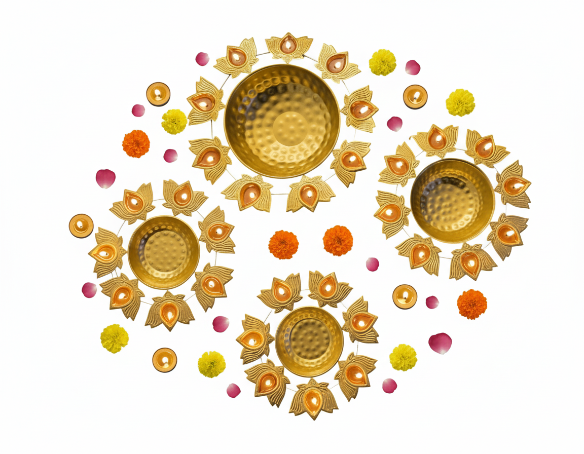 Bring home the Lotus or Peacock 3pcs Urli Tray Set (35cm, 30cm, 25cm) and create a warm, festive glow for every celebration.